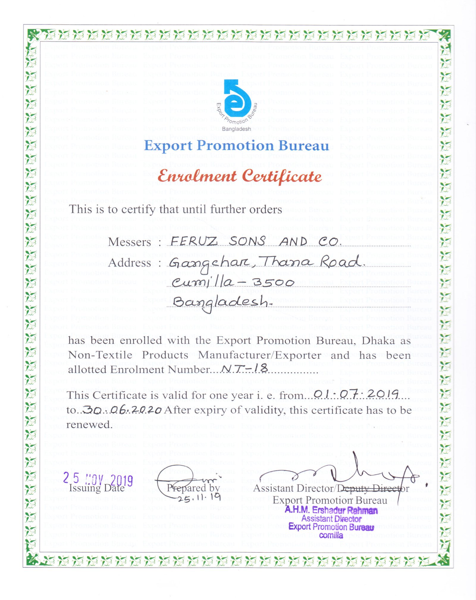 Feruz Sons & Co. can provide GSP (Generalized System of Preferences) FROM “A” Which is enable for Japan and most of major European destinations to pay reduced import duties from theirs home custom.